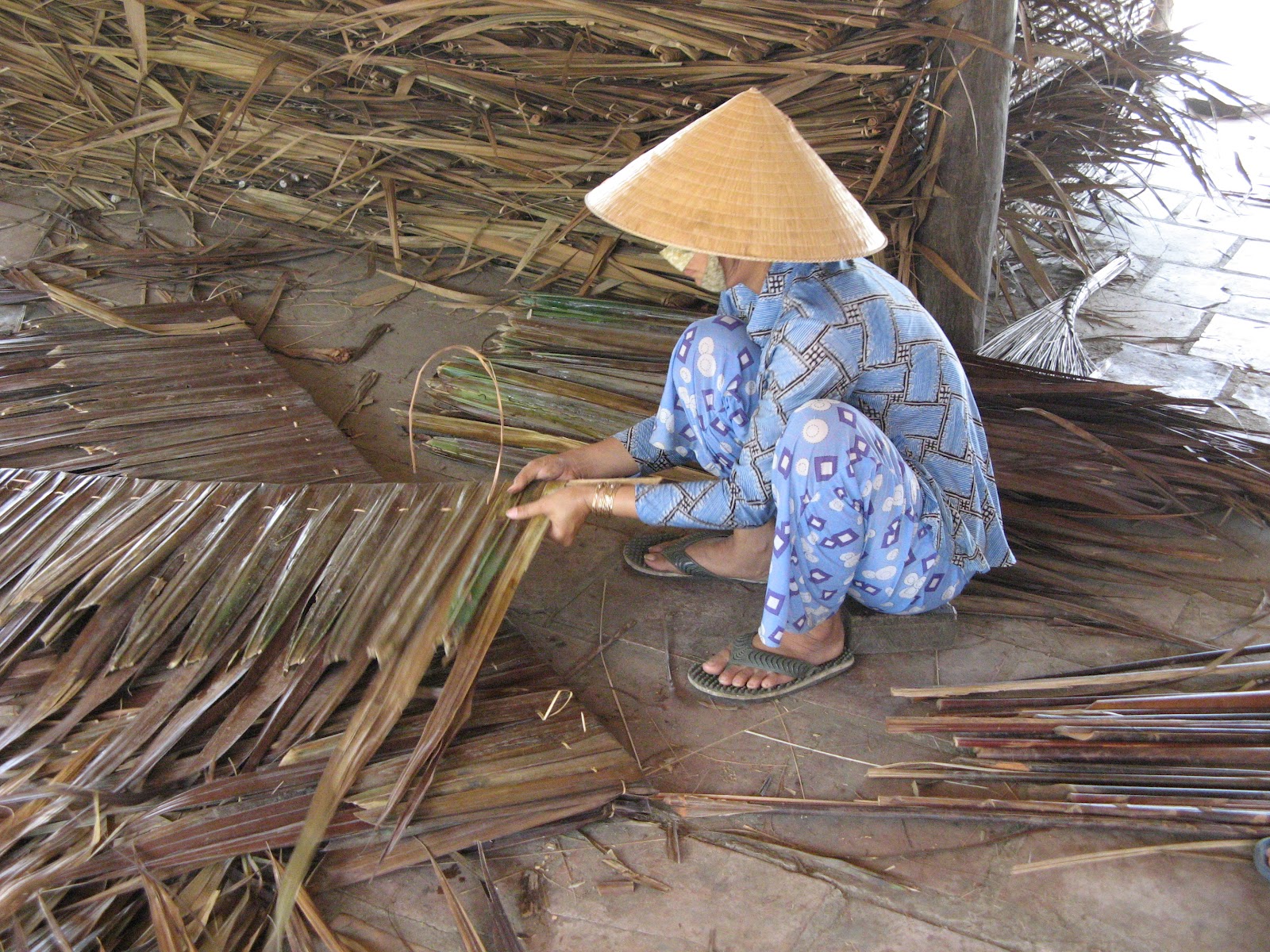 Life in the Mekong Delta is much slower and more peaceful. We travelled by boat to a village where a variety of products and crafts are still produced in traditional ways - everything from bricks to toffee, knives, roof thatching and even coffins!